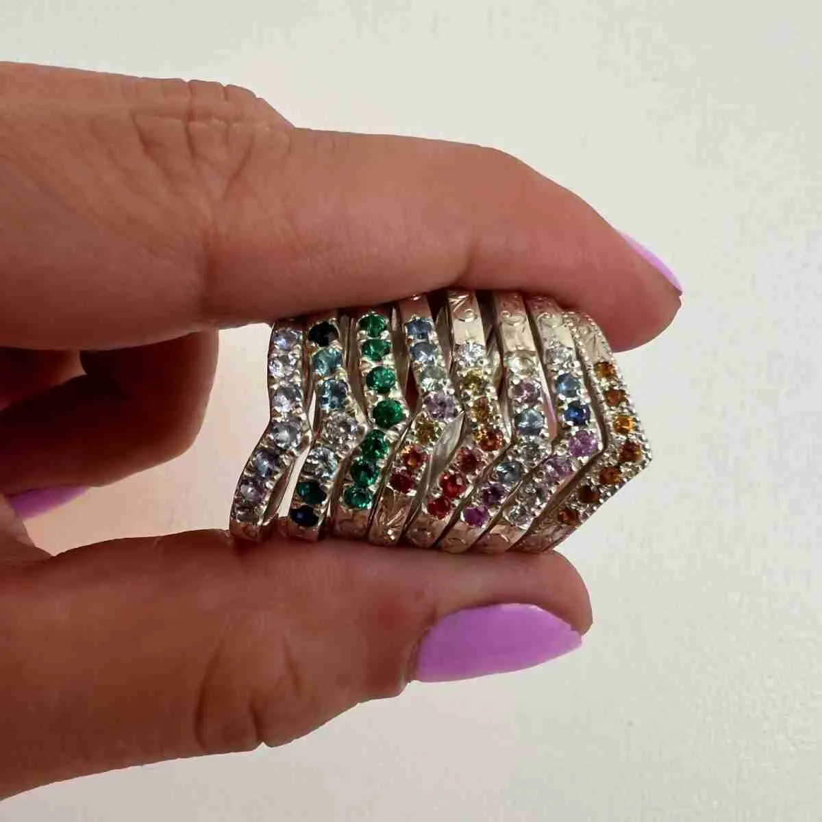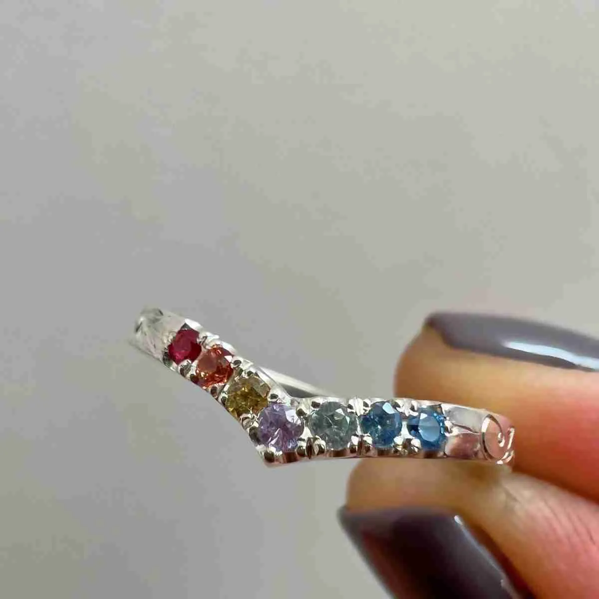 Anillo Chevron 7 piedras 2 mm